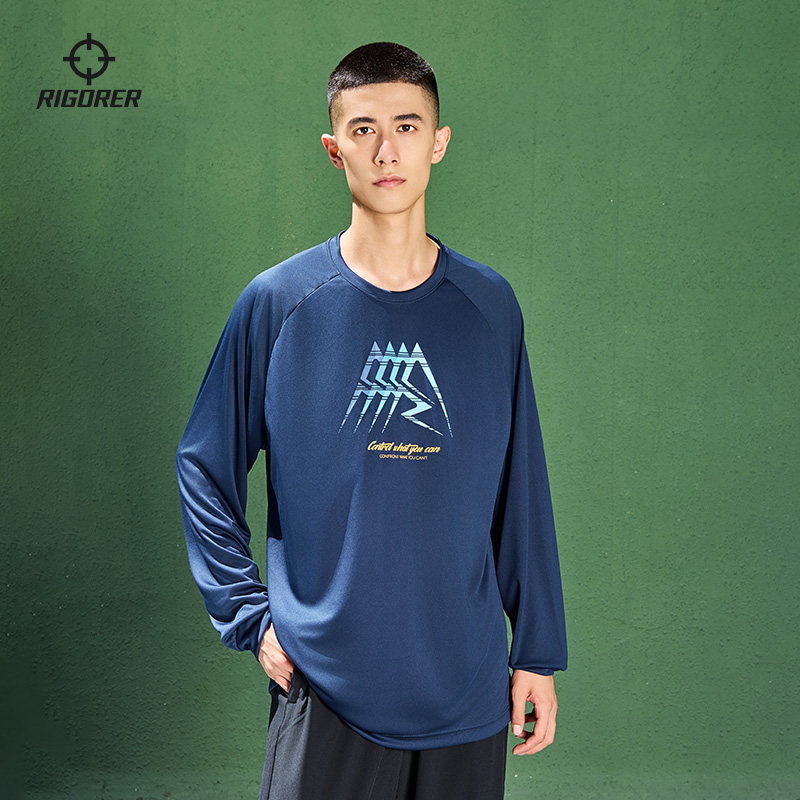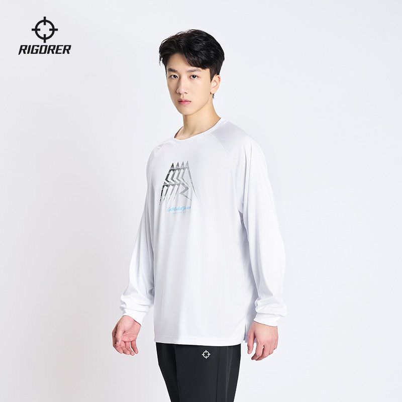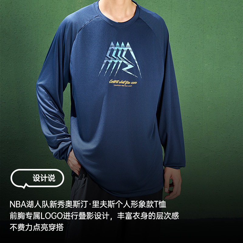 准者长袖T恤男子冬季新款宽松百搭运动投篮圆领休闲时尚印花上衣