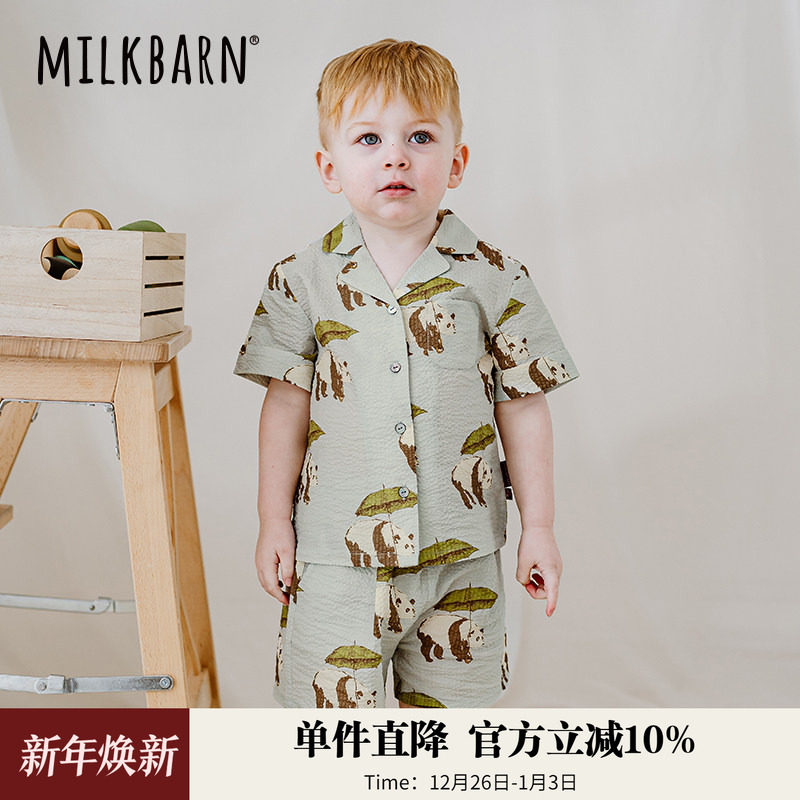 Milkbarn儿童衬衫短裤套装宝宝夏季衣服男女童休闲童装