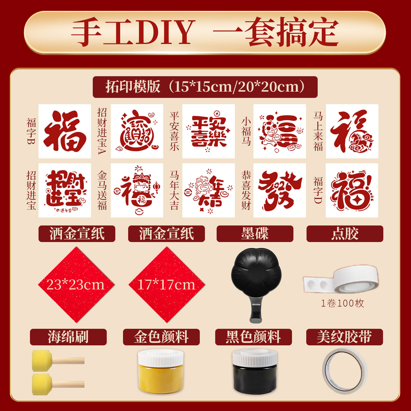 福字拓印材料包2026马年工具套装diy手工新年幼儿园非遗镂空儿童学生大号涂鸦模版模具宣纸春节年画