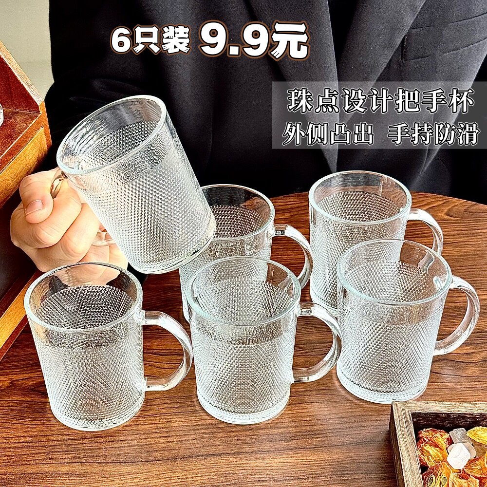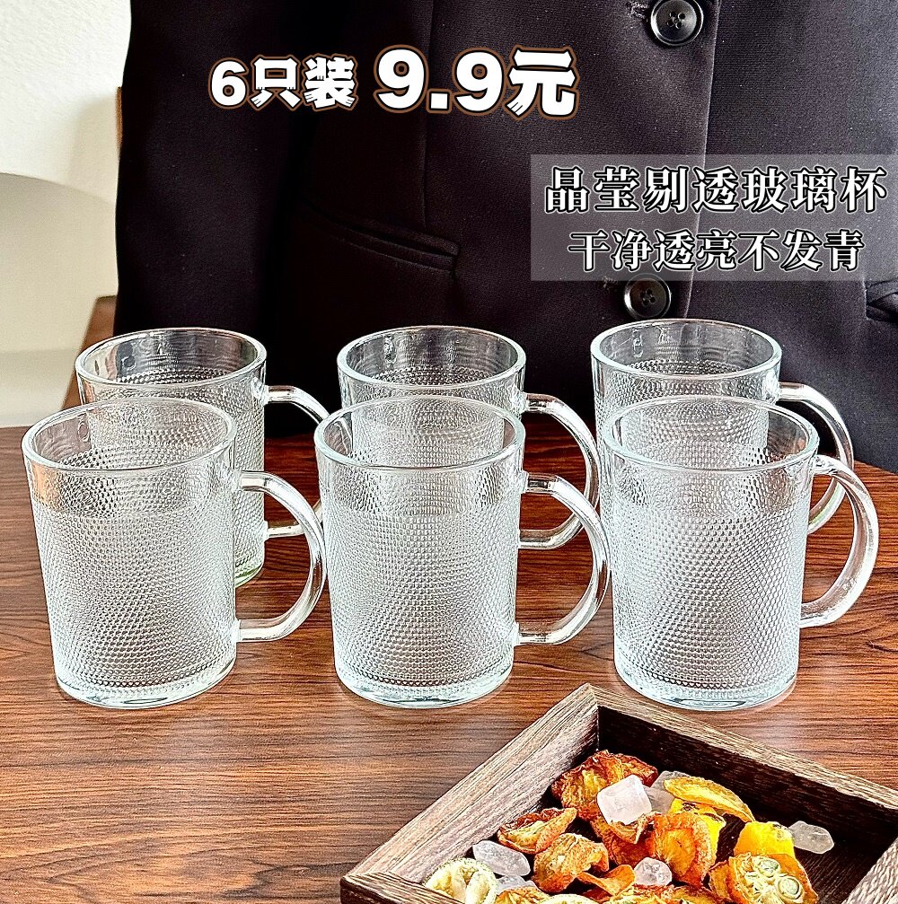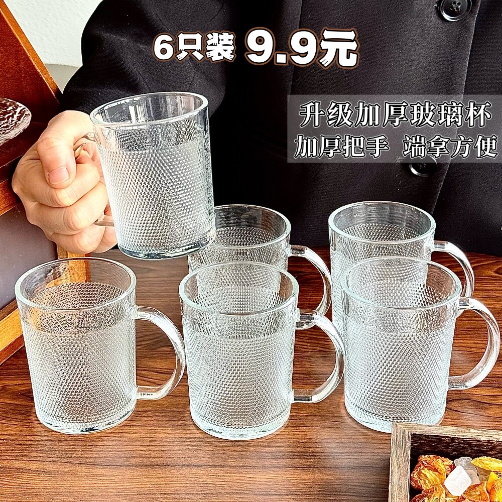 玻璃杯带把手杯子耐热马克杯女待客茶杯喝水杯家用客厅套装早餐杯