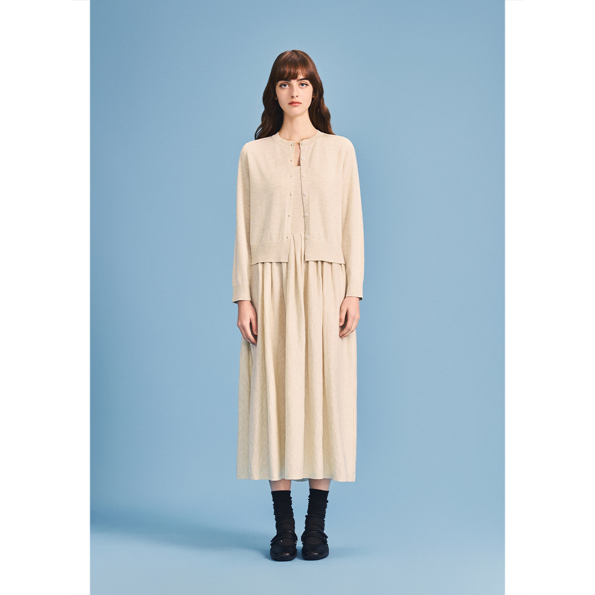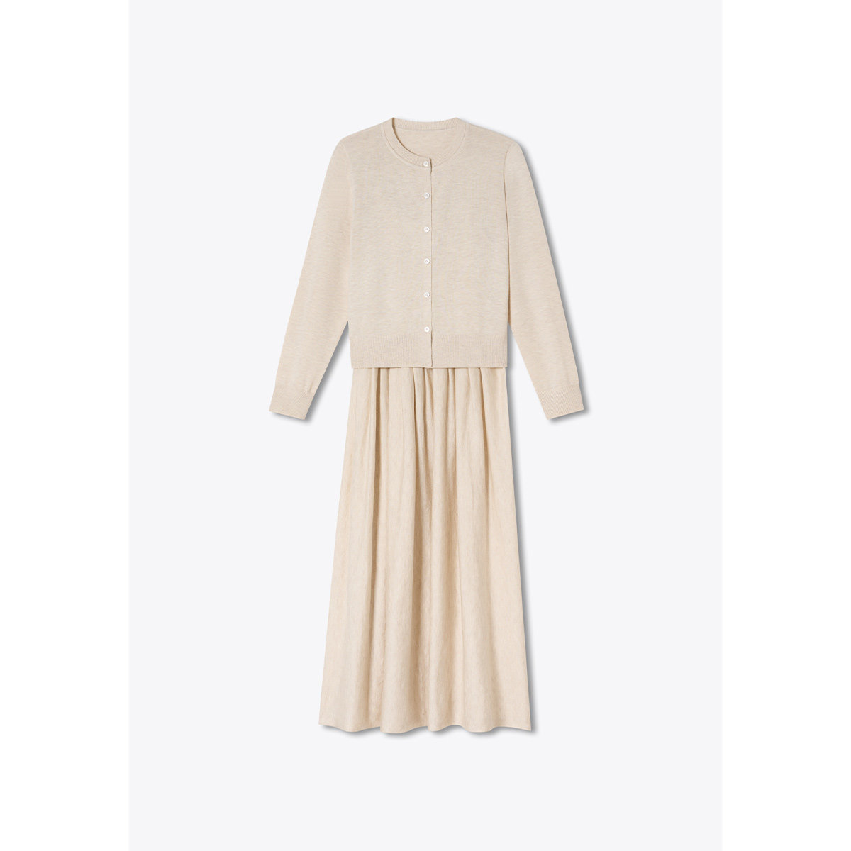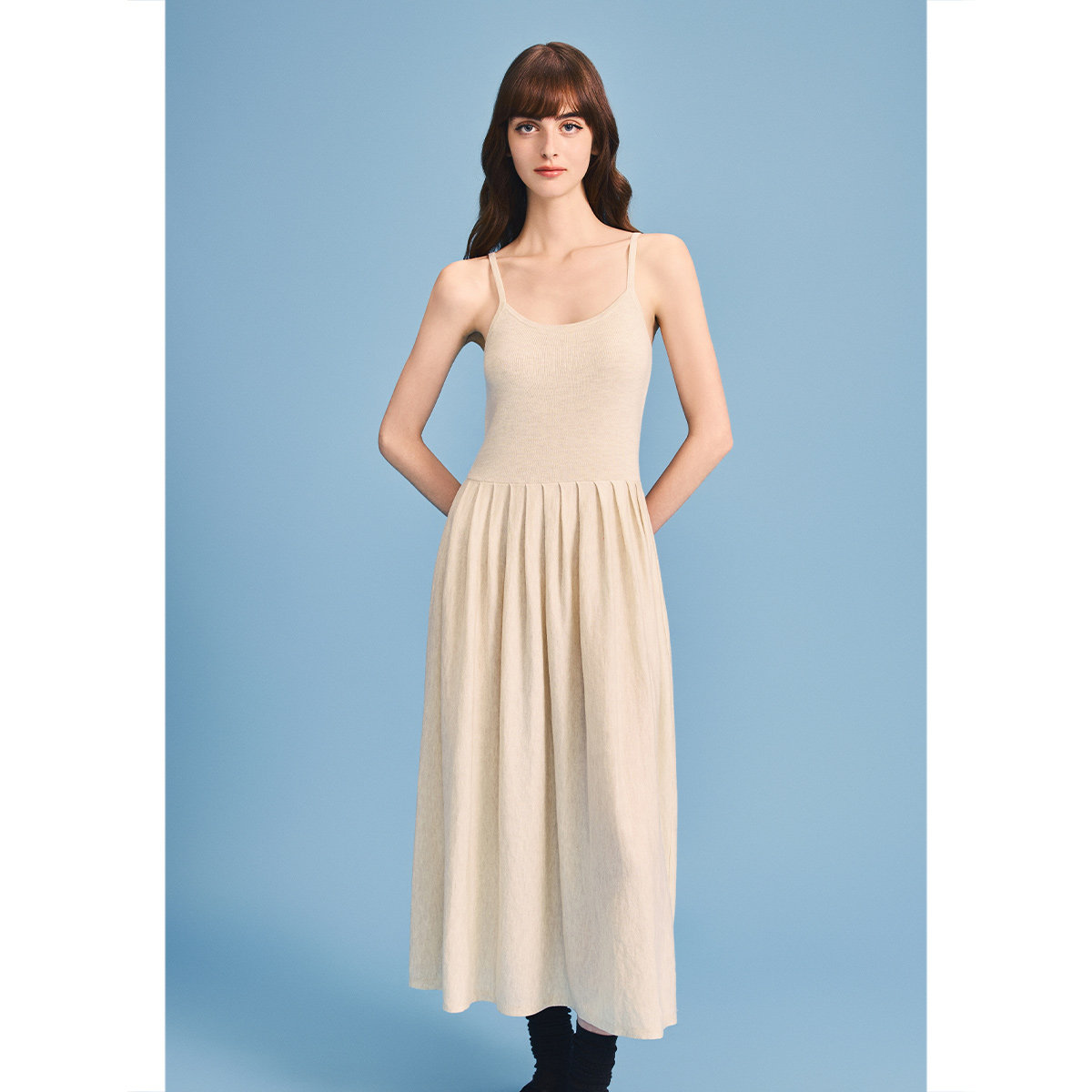 诗篇专选羊毛混纺针织圆领开衫吊带百褶连衣裙2026夏季新款