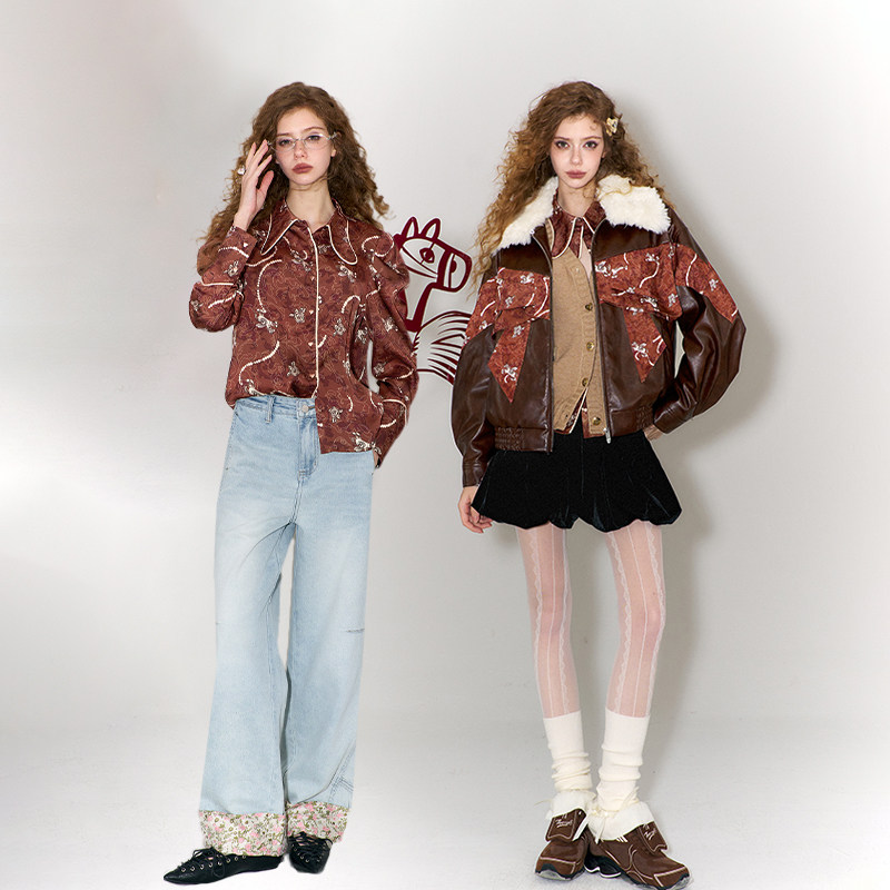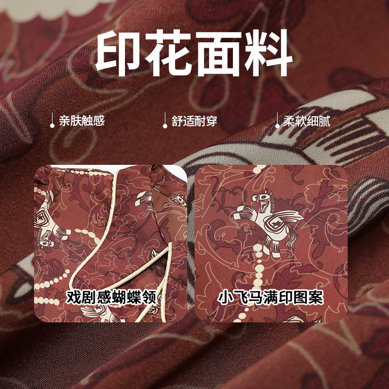 妖精的口袋小飞马满印宫廷风衬衫女2026年早春新款新中式缎面上衣