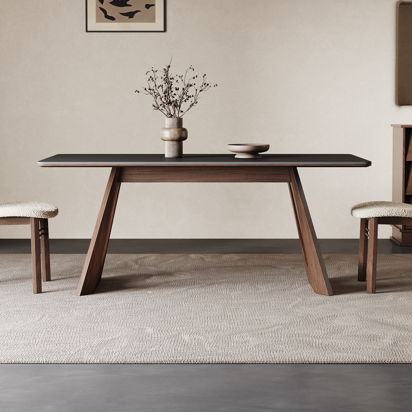 黑色岩板餐桌长方形2025新款家用小户型高端意式轻奢复古实木餐桌