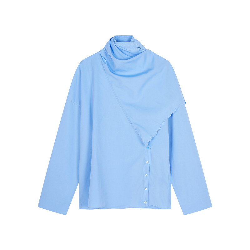 LESS全棉设计感围裹衬衫女春秋宽松V领长袖休闲上衣女2O021471H