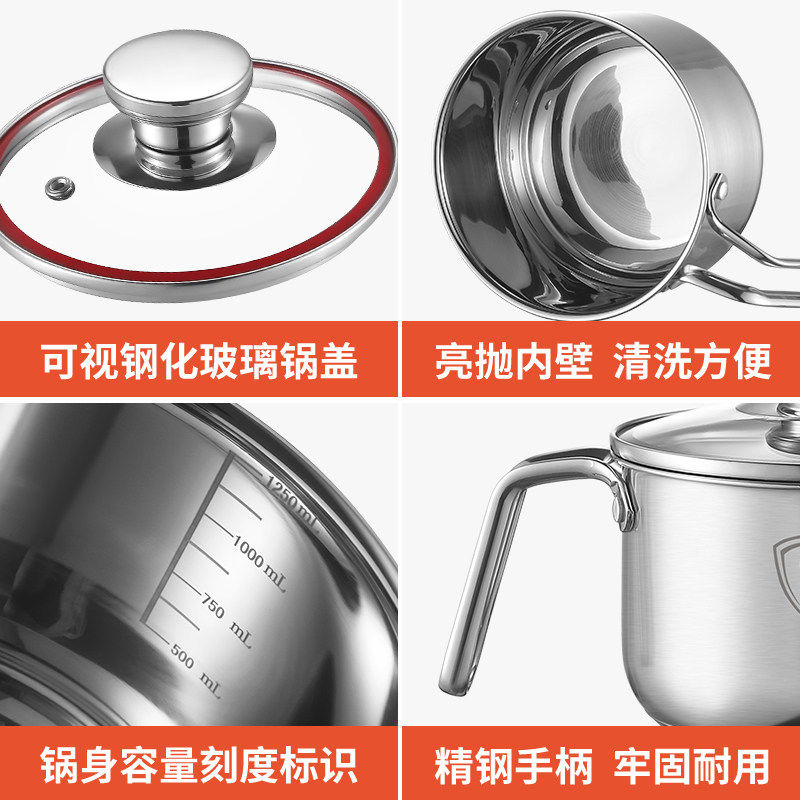 康巴赫迷你小奶锅304不锈钢加厚汤锅小煮锅泡面锅婴儿宝宝辅食a9
