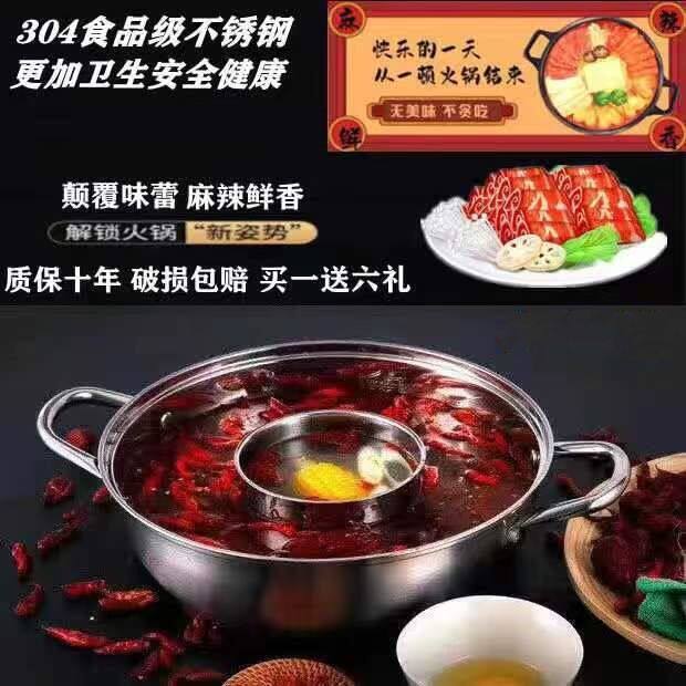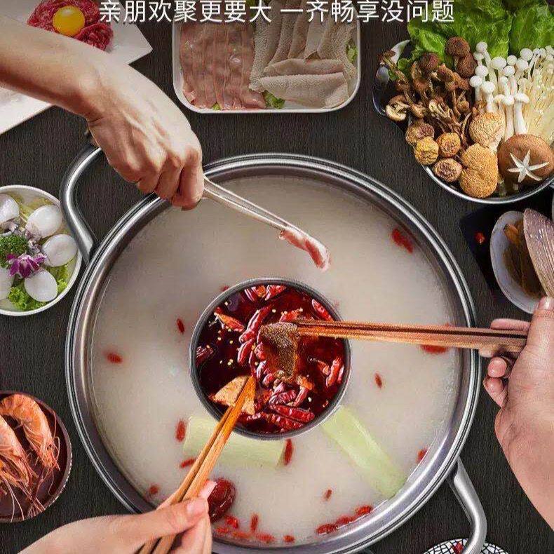3加厚不锈钢鸳鸯火锅盆家用子母锅汤锅涮锅大锅专用电磁炉适双耳