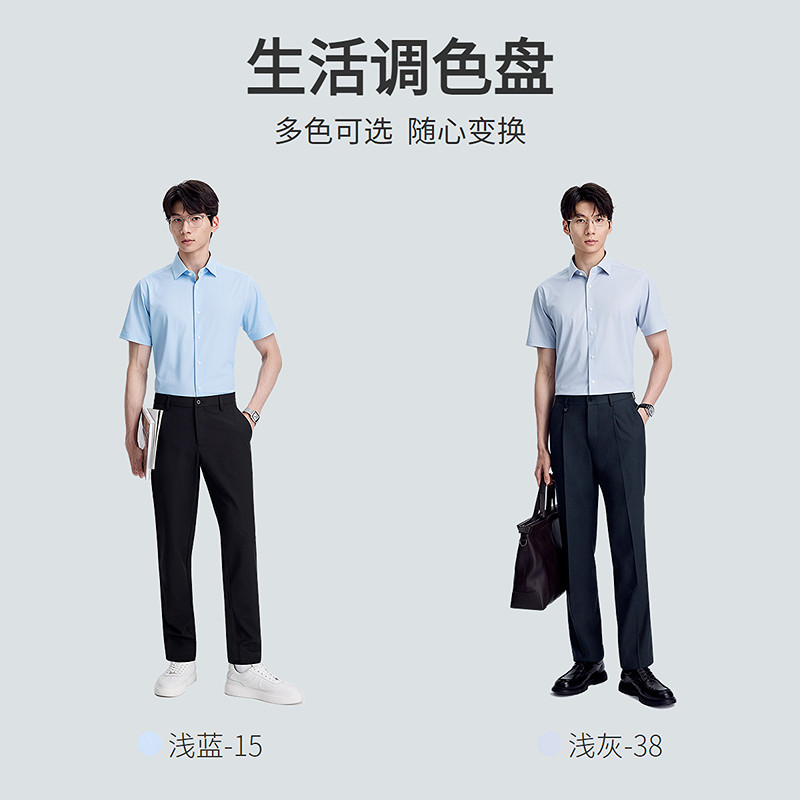 【弹力速干】金利来新款男士正装衬衫凉感抑菌易打理短袖衬衣
