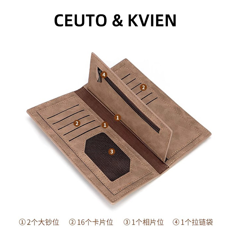CEUTOKVIEN男士钱包长款多卡位卡包一体大容量学生皮夹零钱夹证件