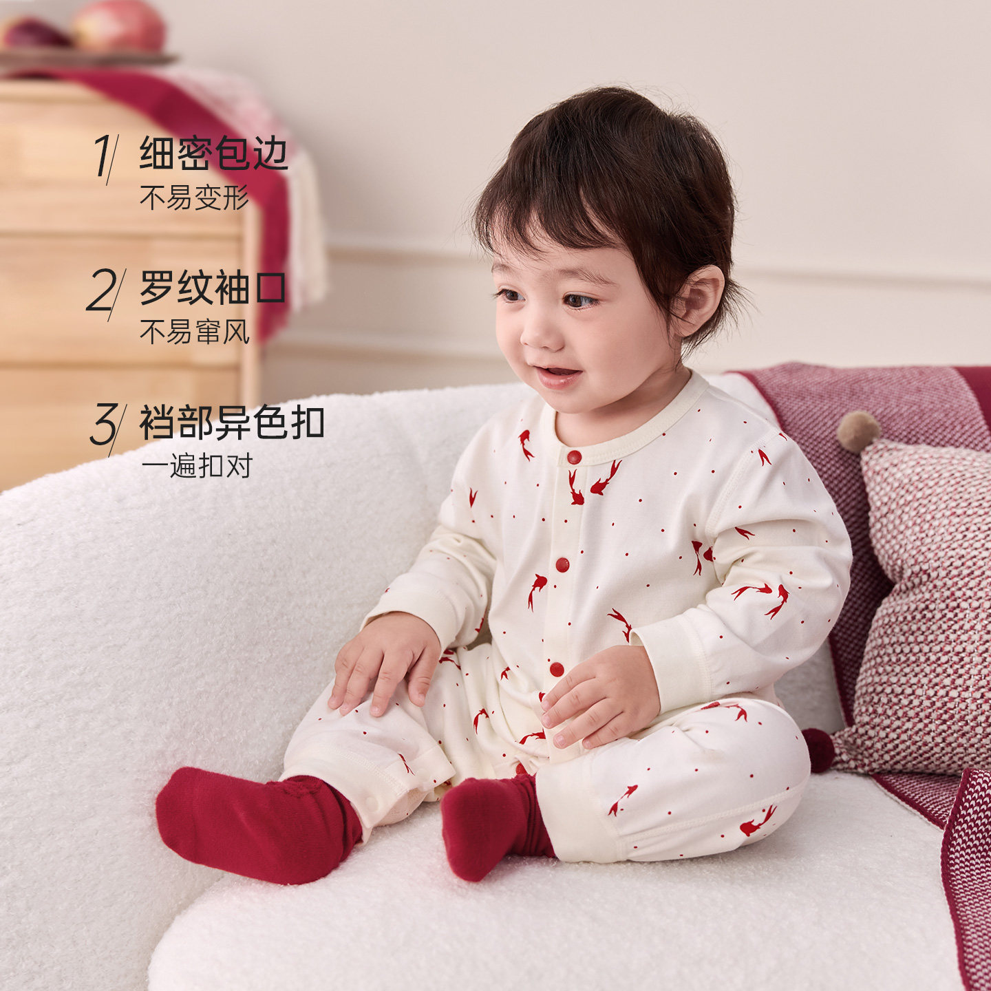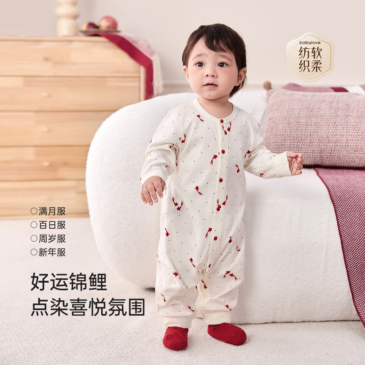 babylove【纺软织柔】婴幼儿连体衣周岁宝宝新年红色哈衣岁禧鳞光