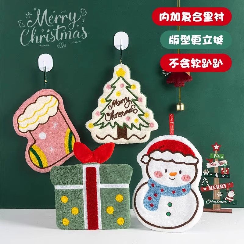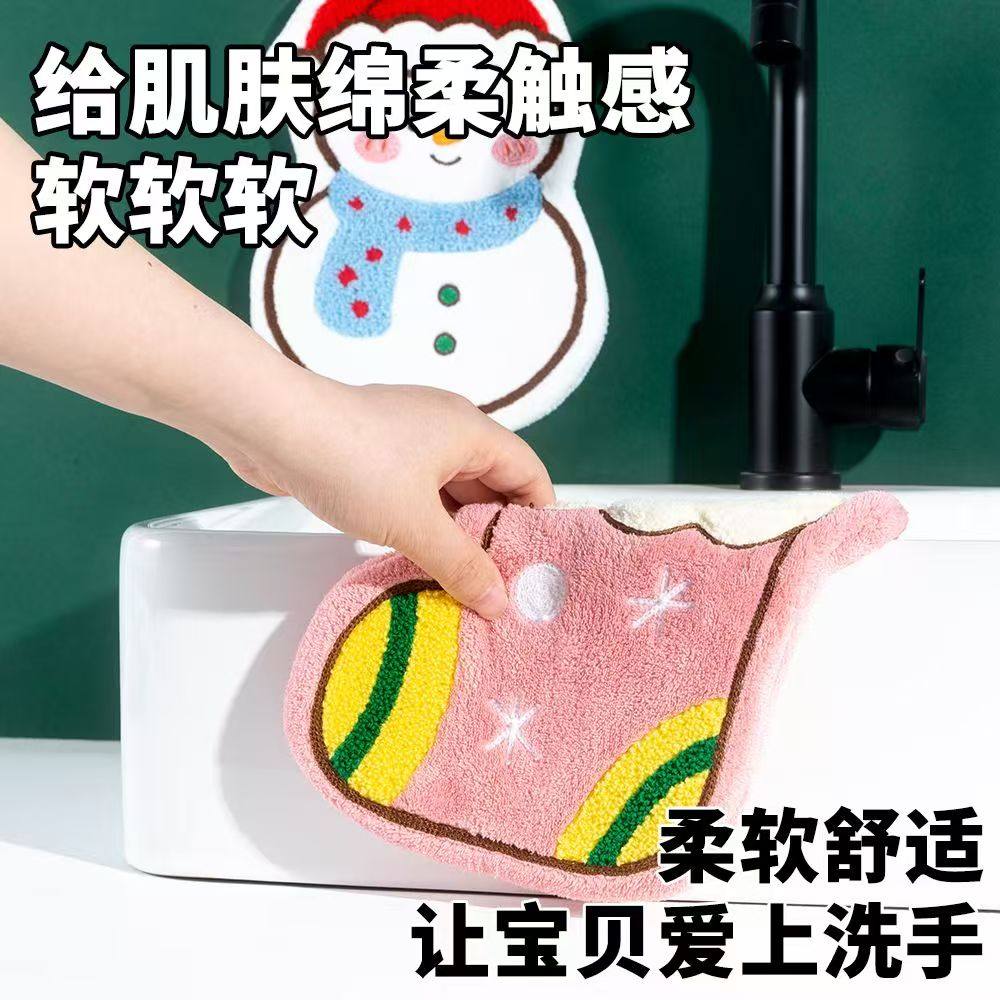 可爱擦手巾圣诞款挂式吸水加厚毛巾洗手巾厨房手帕圣诞树圣诞节