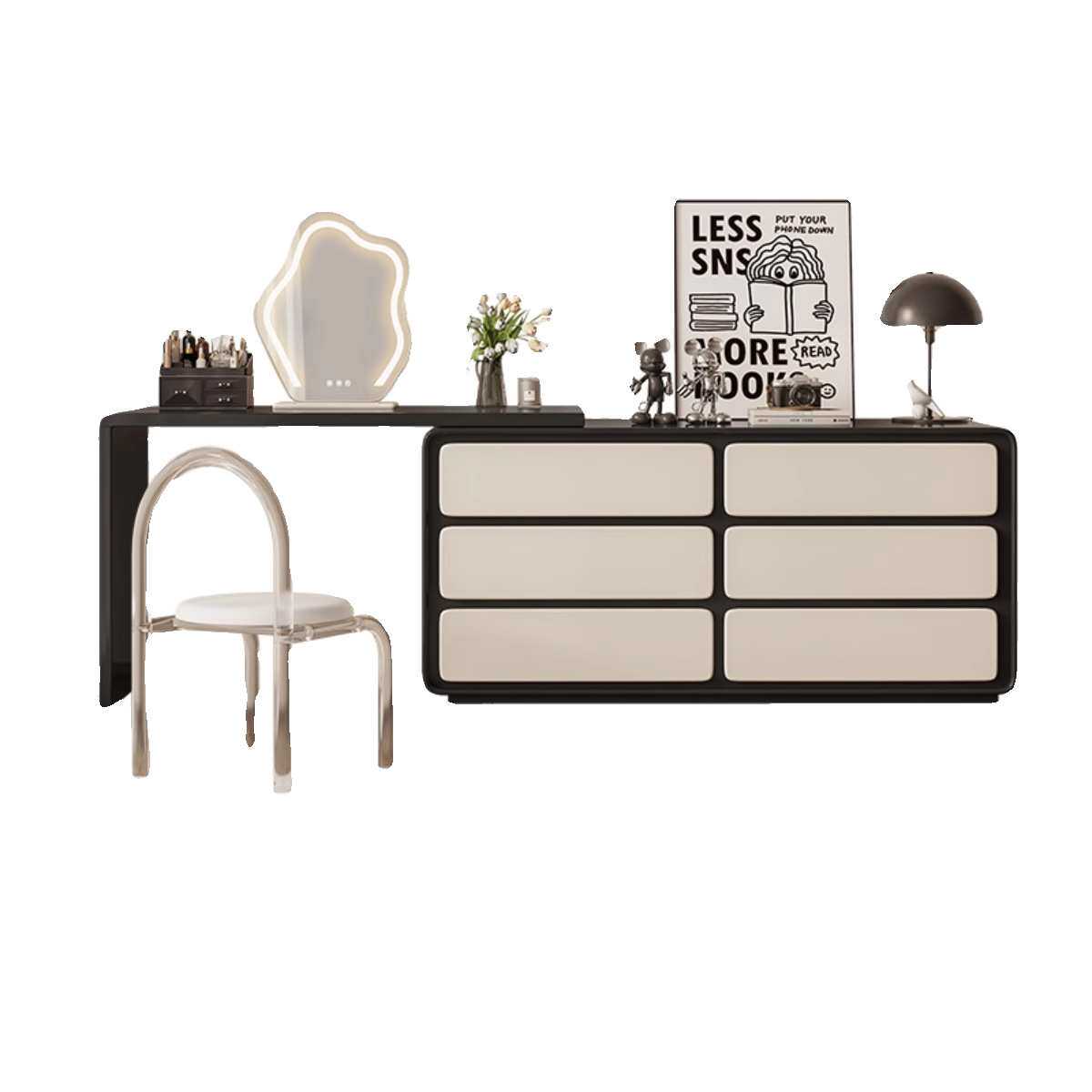 佐尔适中古风法式梳妆台实木卧室现代简约斗柜一体复古转角化妆桌
