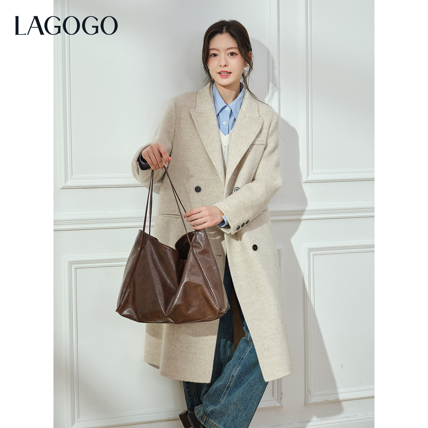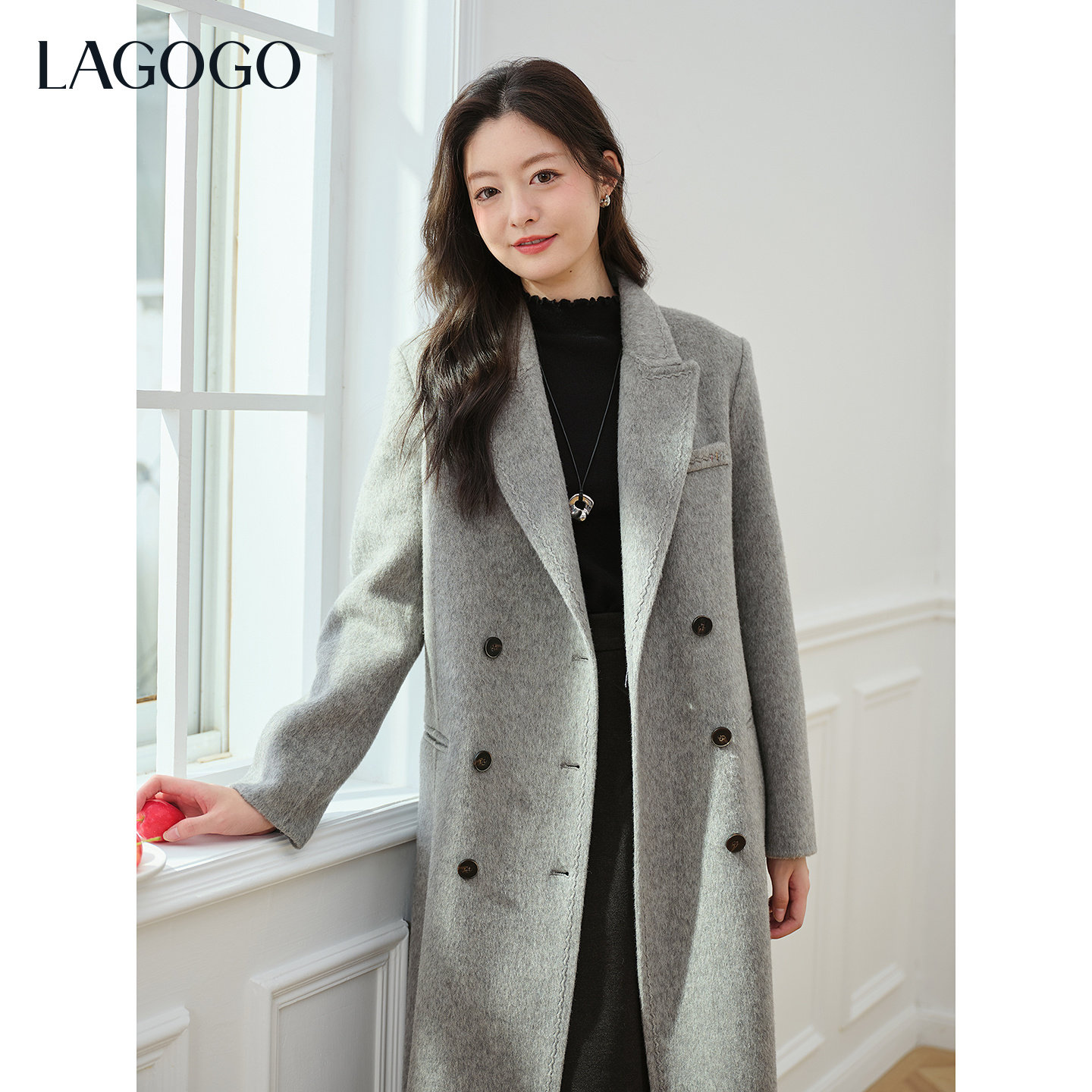 全羊毛LAGOGO智性灰调双面呢大衣女拉谷谷2025年冬季新款灰色外套