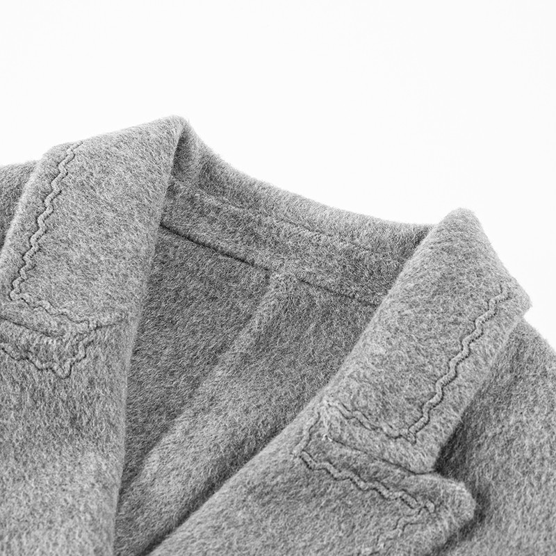 RUISHI芮时重磅驼绒桑蚕丝羊毛慵懒两穿领灰色毛呢大衣秋冬外套女