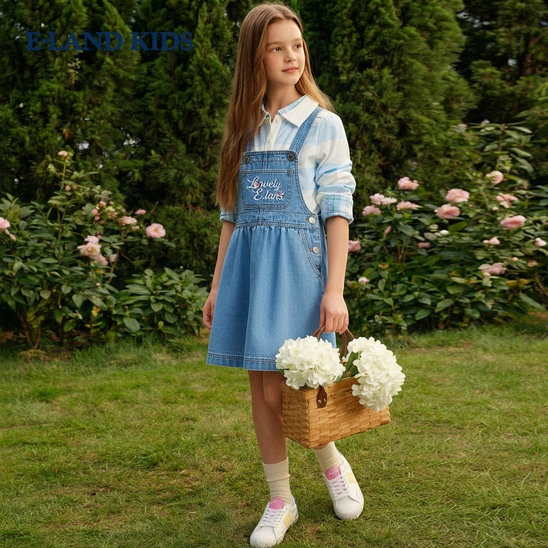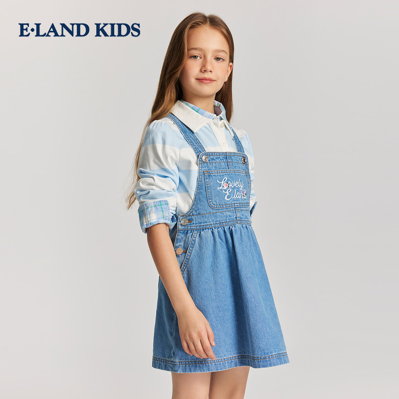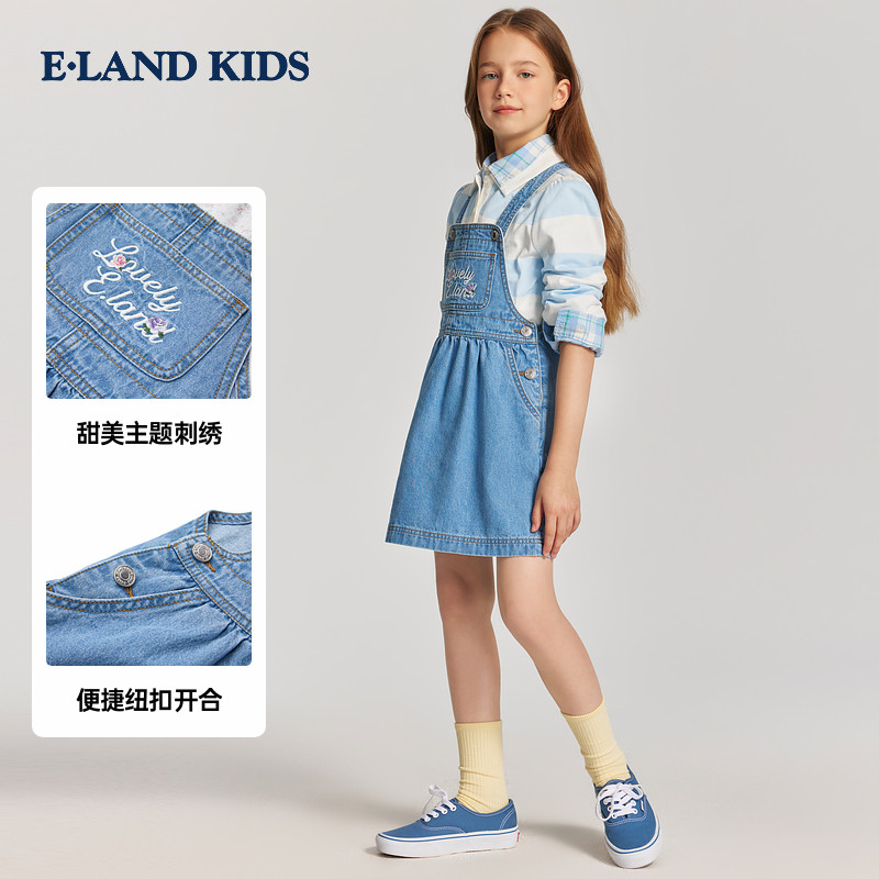 【100%棉】eland kids衣恋童装女童背带裙26年夏季新品复古牛仔裙
