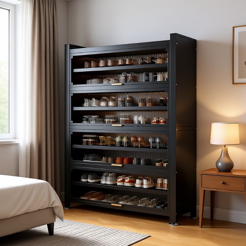 加厚钢制鞋柜门口家用一体靠墙多层储物柜入户落地大容量防尘鞋架