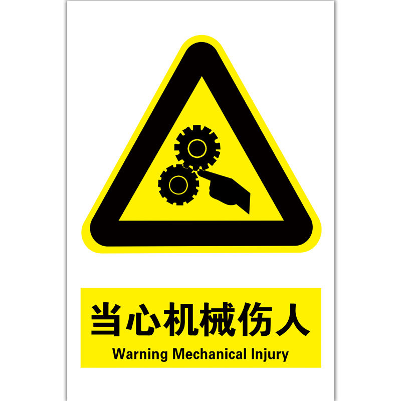 当心机械伤人标识牌工厂生产车间机器设备注意安全温馨提示牌当心触电夹手小心机械伤手提示警告标志贴纸定制