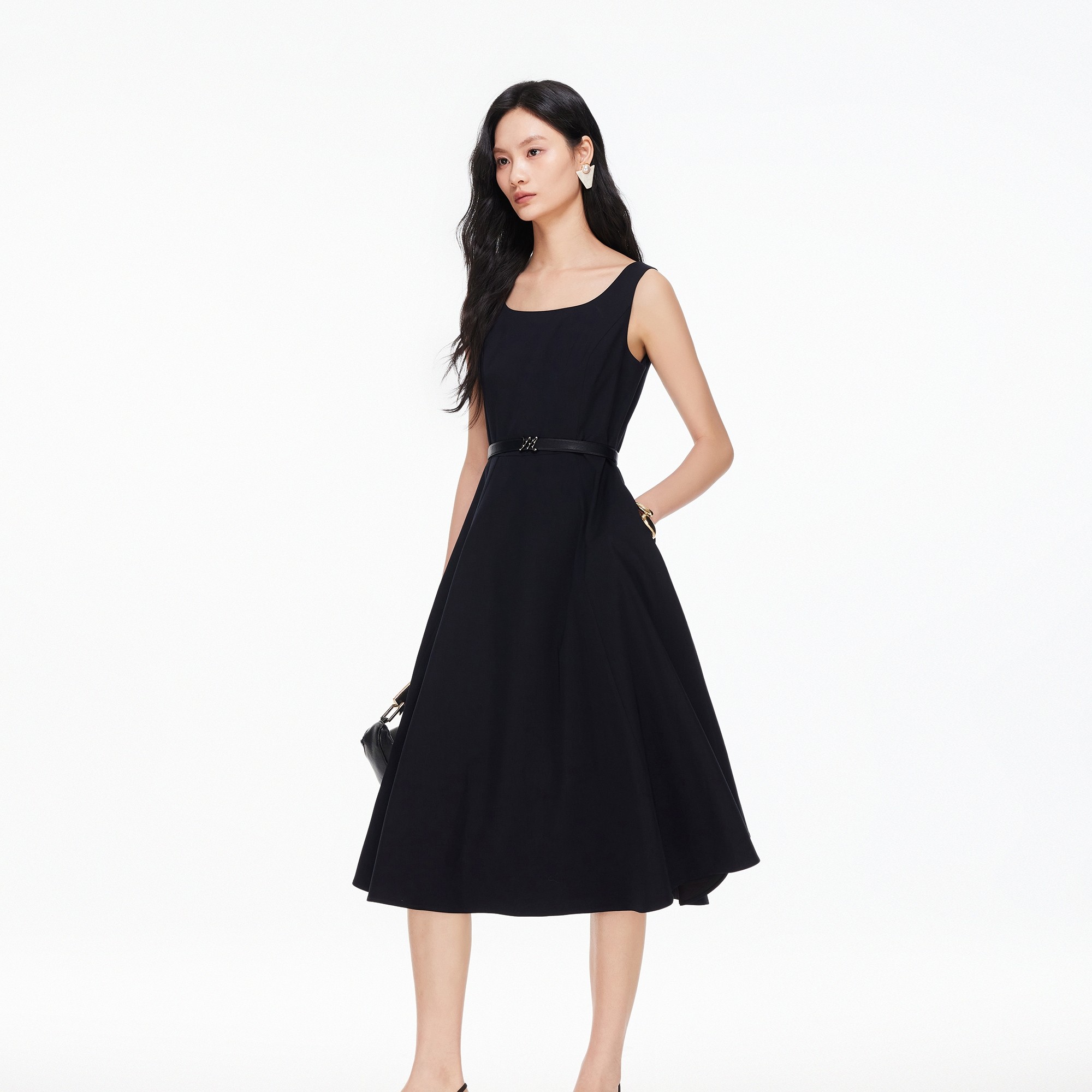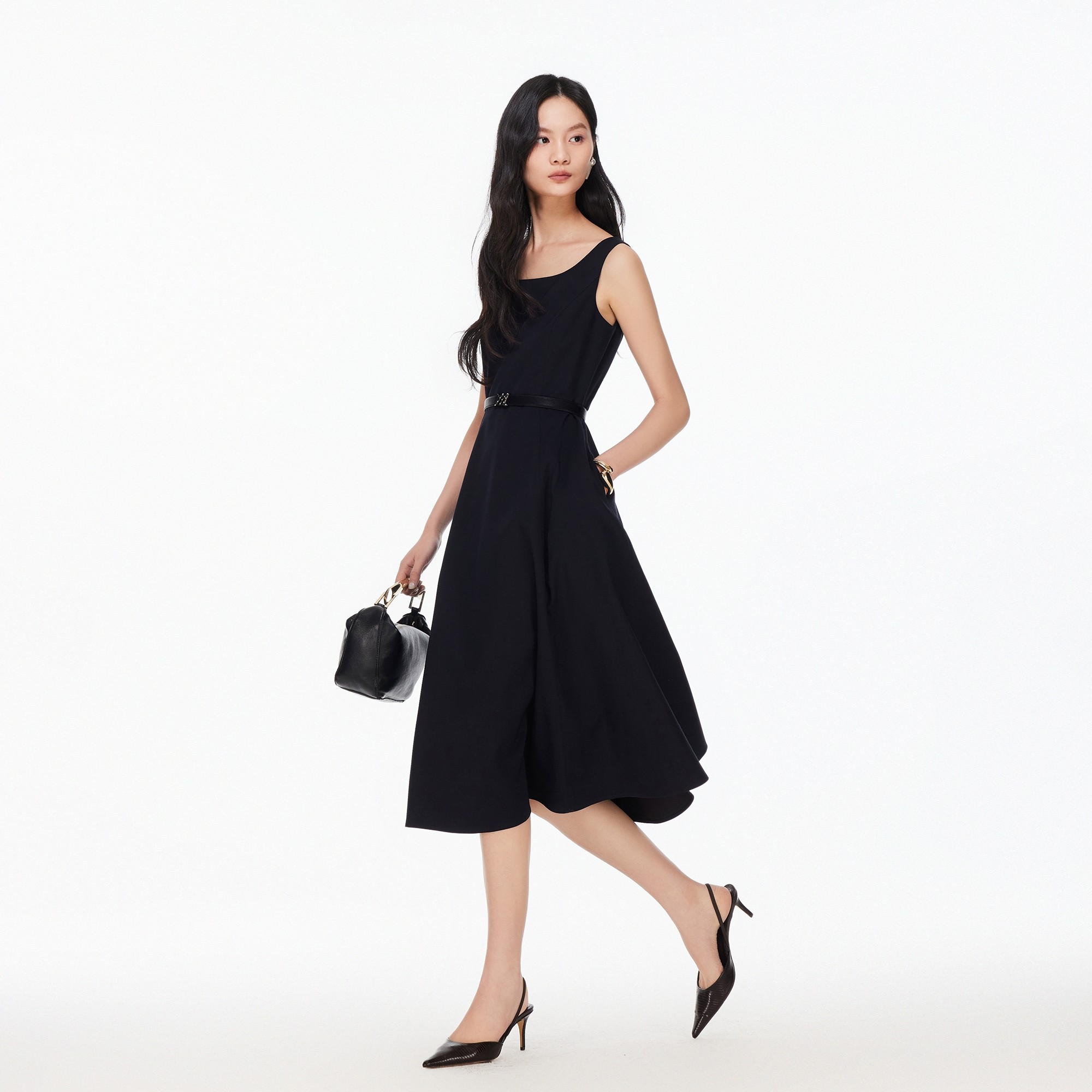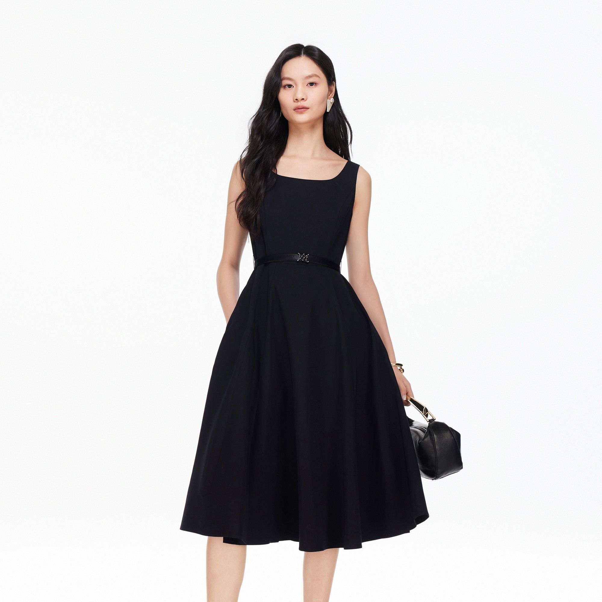COCOBELLA简约气质黑色收腰极简风连衣裙女优雅短袖长裙FR3033-2