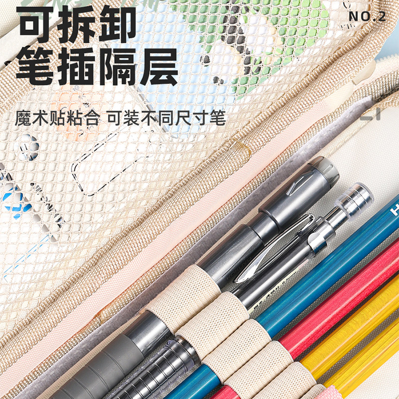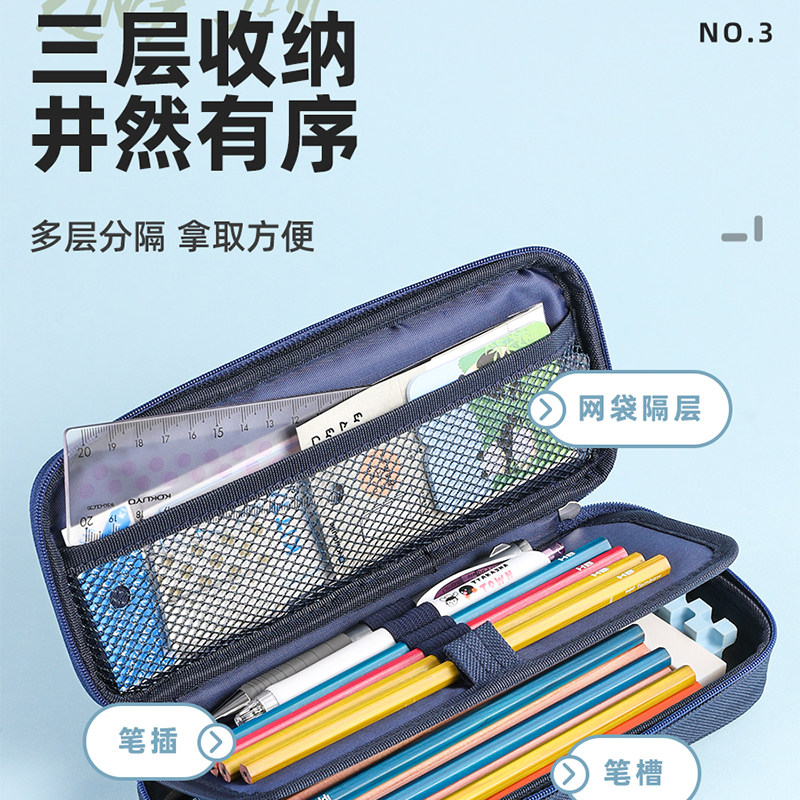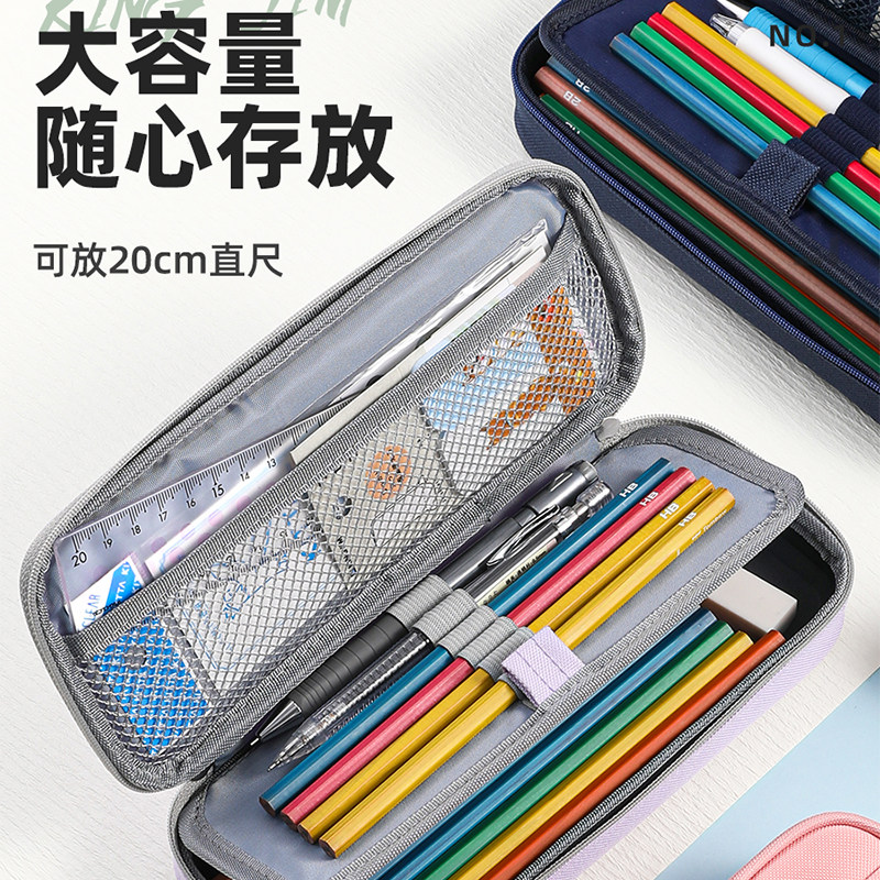KING JIM 锦宫帆布笔袋 大容量双仓笔袋 带笔帘 文具袋收纳袋铅笔袋多功能便携笔盒