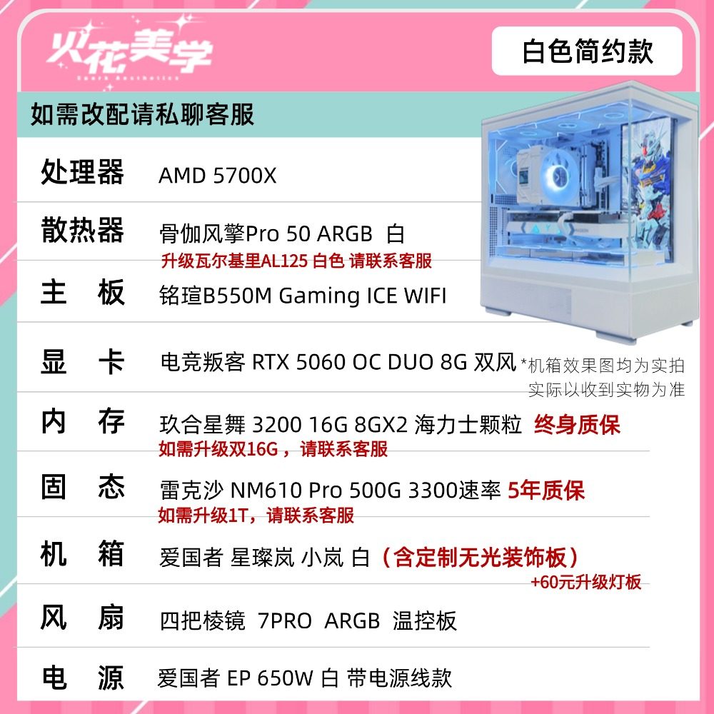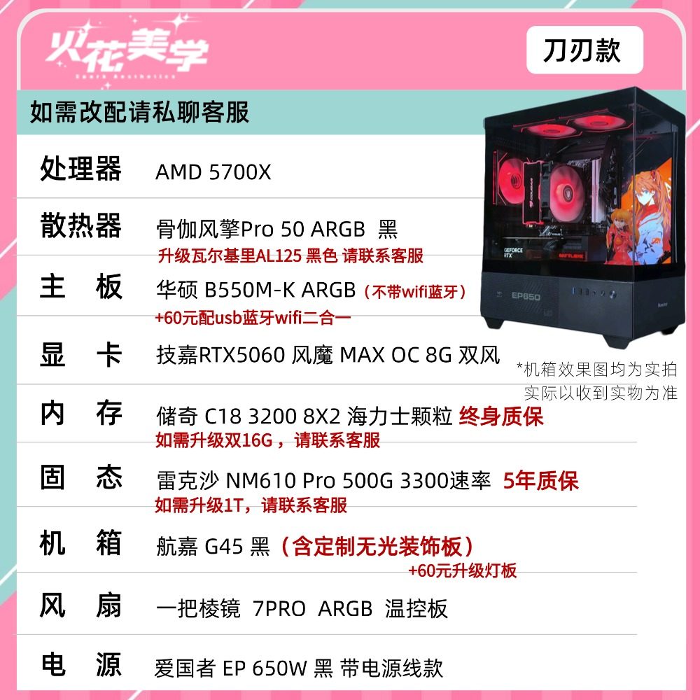 5000元定制主机 AMD5700X+5060 DIY游戏电脑主机整机