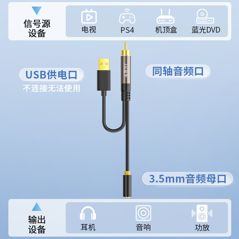 spdif同轴音频转换器莲花电视机转换3.5mm母口音响功放aux转接头
