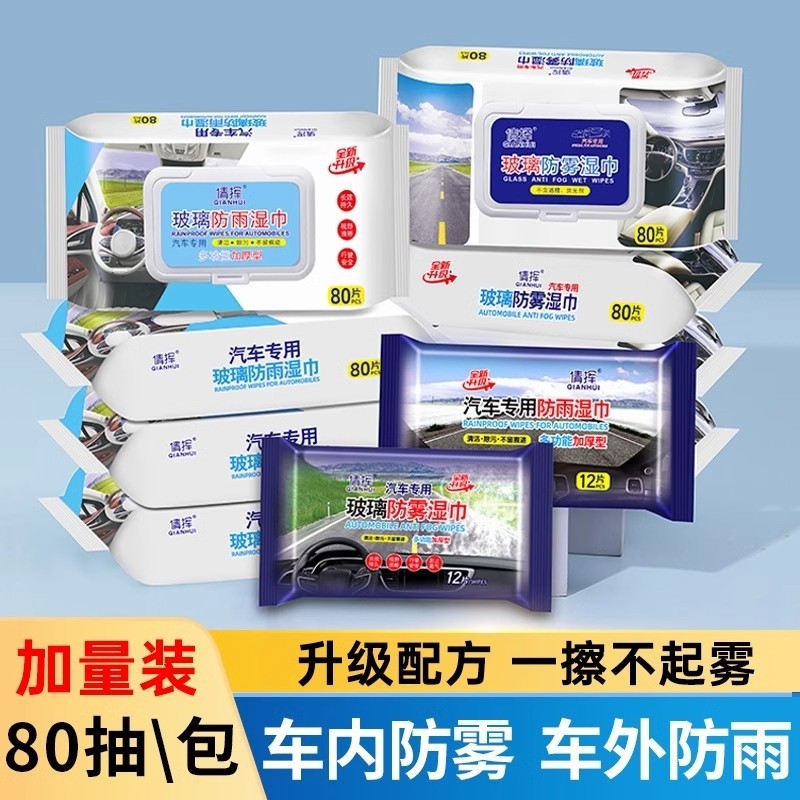 汽车玻璃防雾湿巾防雨剂下雨天车窗后视镜防雨除雾去油膜清洁湿巾