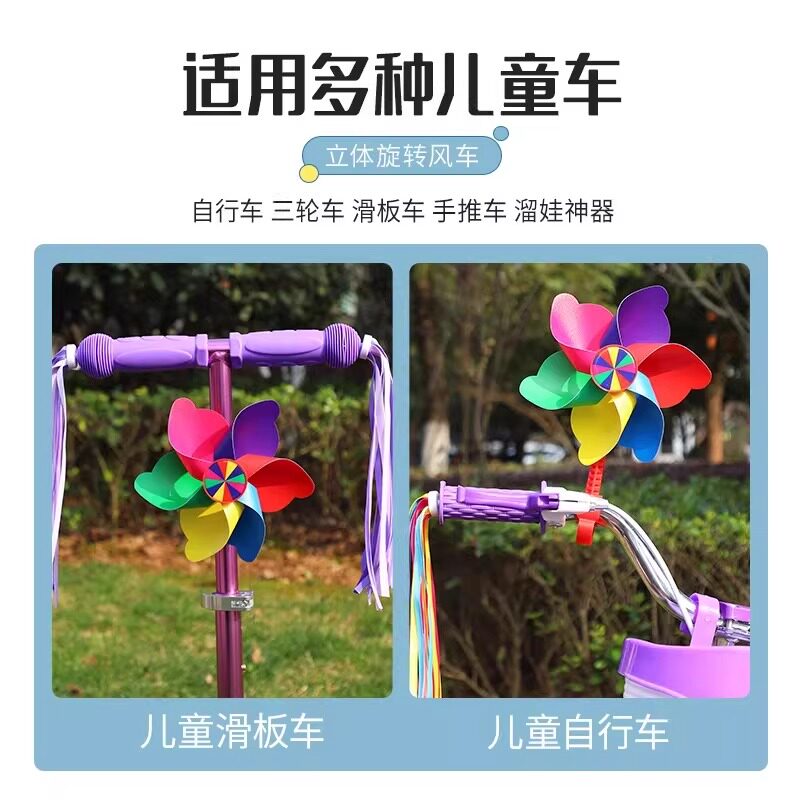 六彩旋转风车儿童滑板车自行车婴儿宝宝推车装饰挂件风车户外玩具