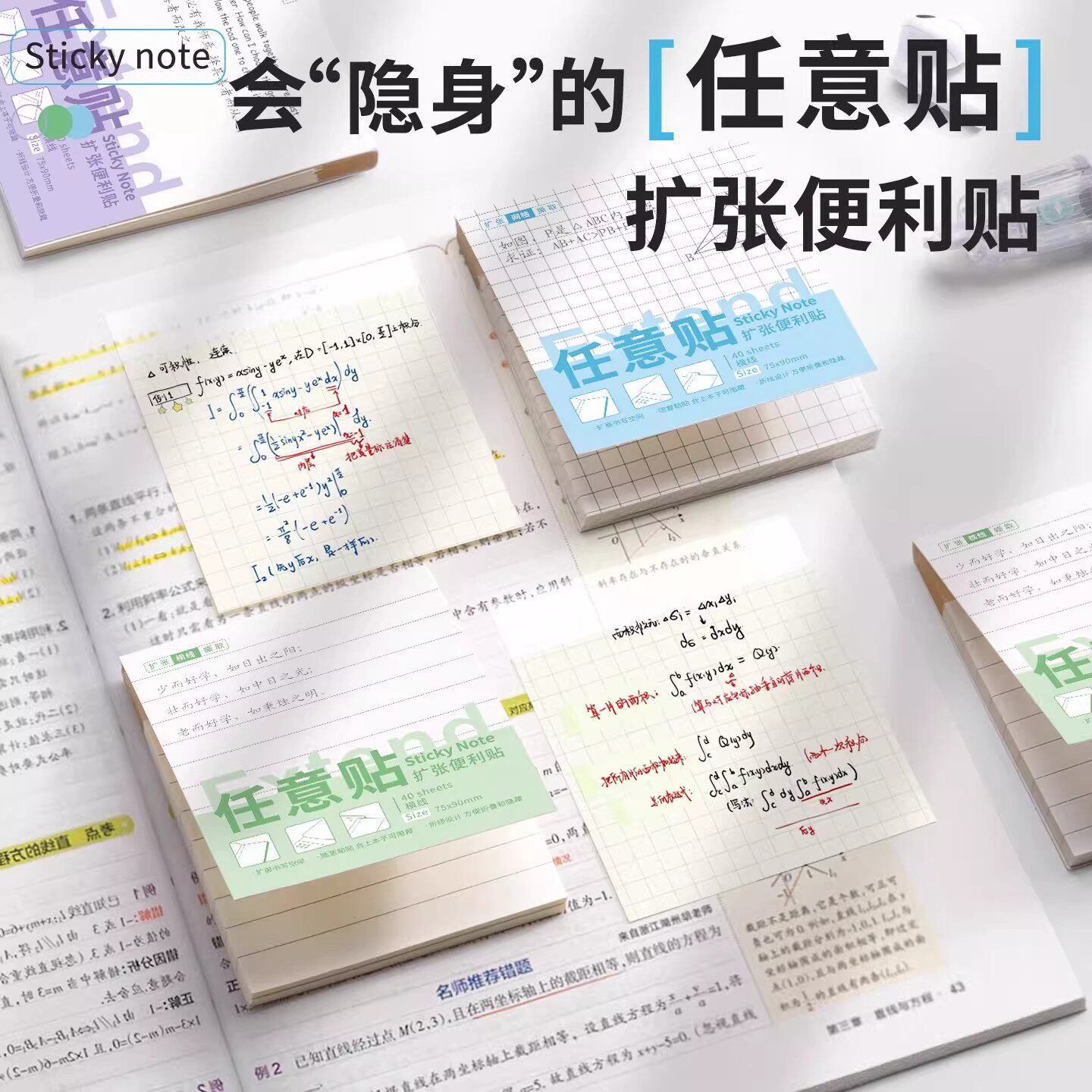 任意扩张贴便利贴不遮挡文字透明可折叠考研小学生用可撕有粘性便签贴纸初高中生记笔记贴订正错题办公便利贴