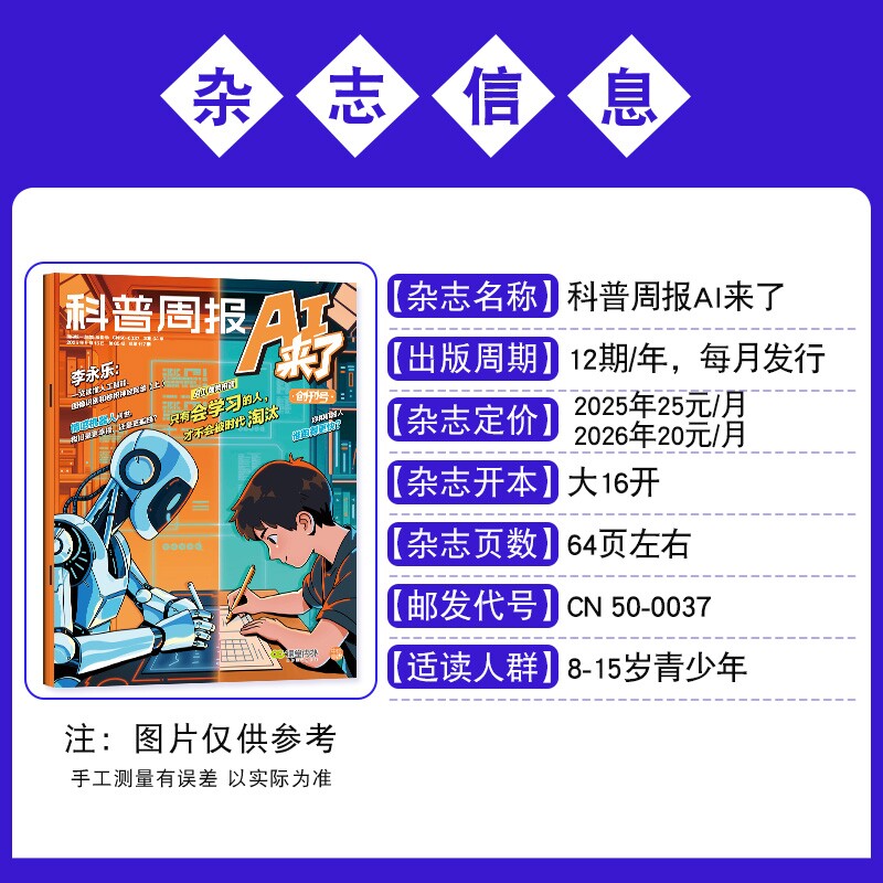 科普周报AI来了杂志2026年1/2/3月新【全年/半年订阅】8-15岁青少年中小学生AI学习探索科学科技百科万物好奇号思维逻辑非过刊