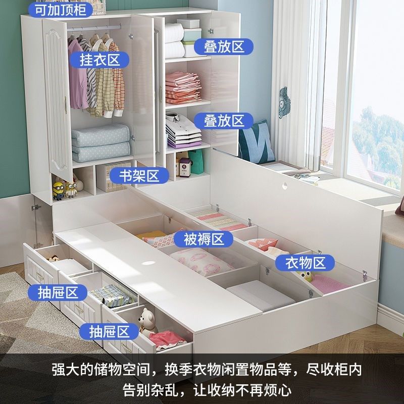 新榻榻米衣柜床床一体儿童床小户型多功能带组合床衣帽间储物书桌