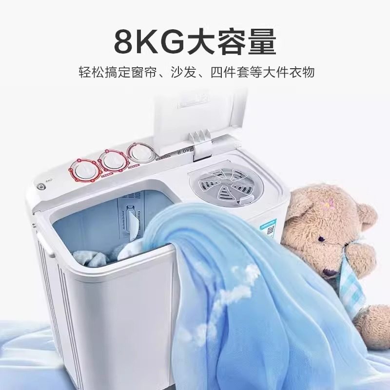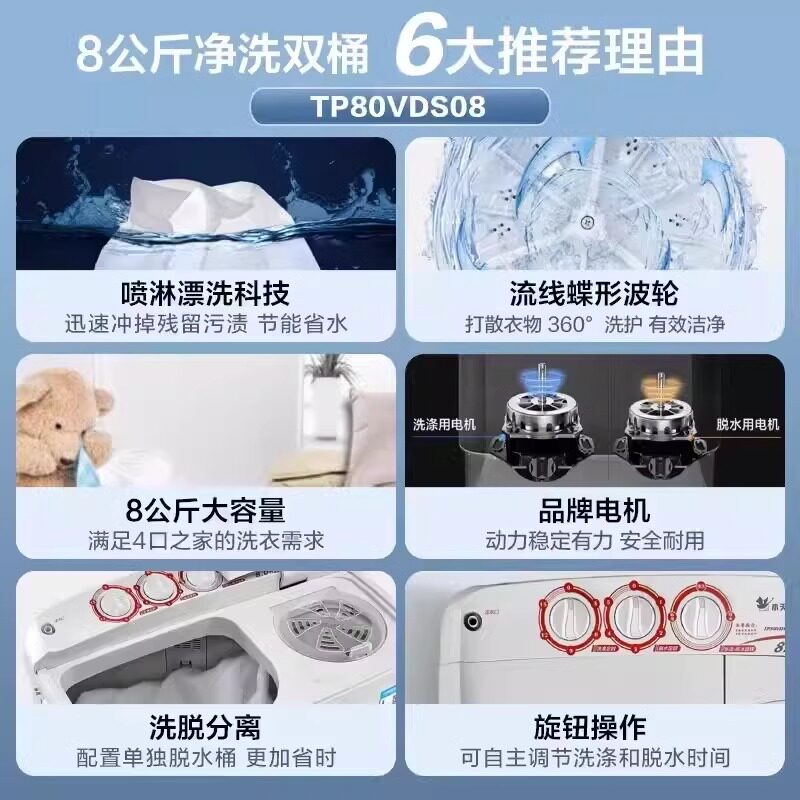 净魔方小天鹅8公斤小型双桶双缸半自动洗衣机大容量宿舍TP80VDS08
