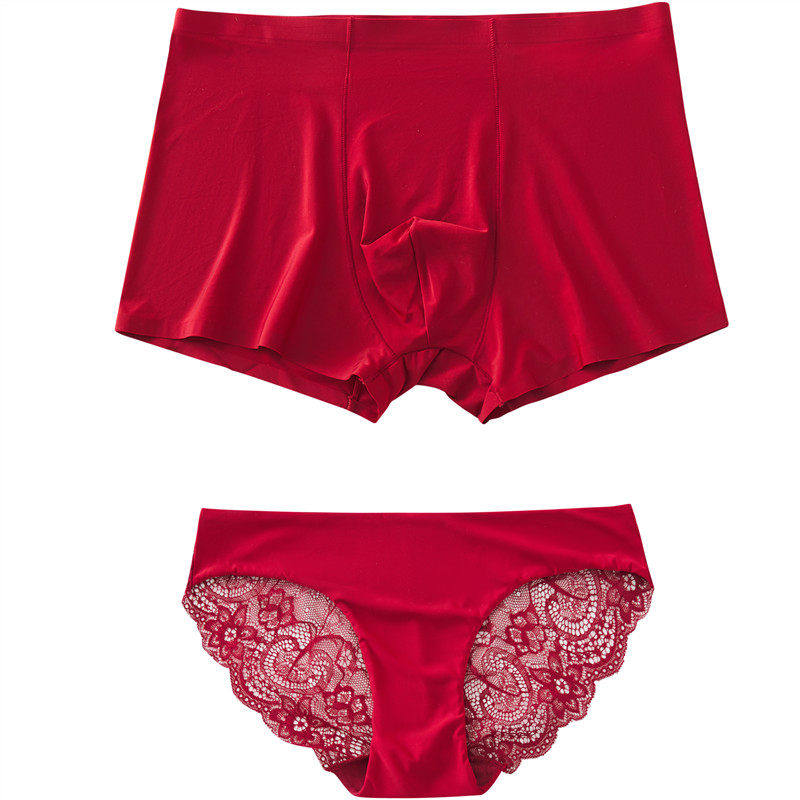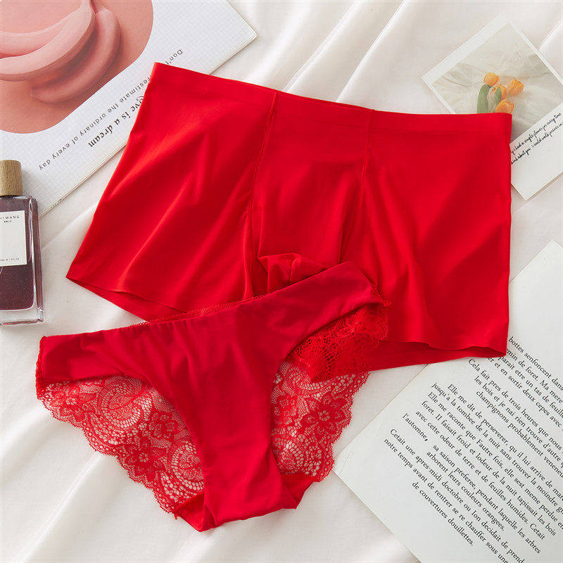 一套全国!无痕冰丝情侣内裤性感诱惑本命年结婚大红平角提臀低腰