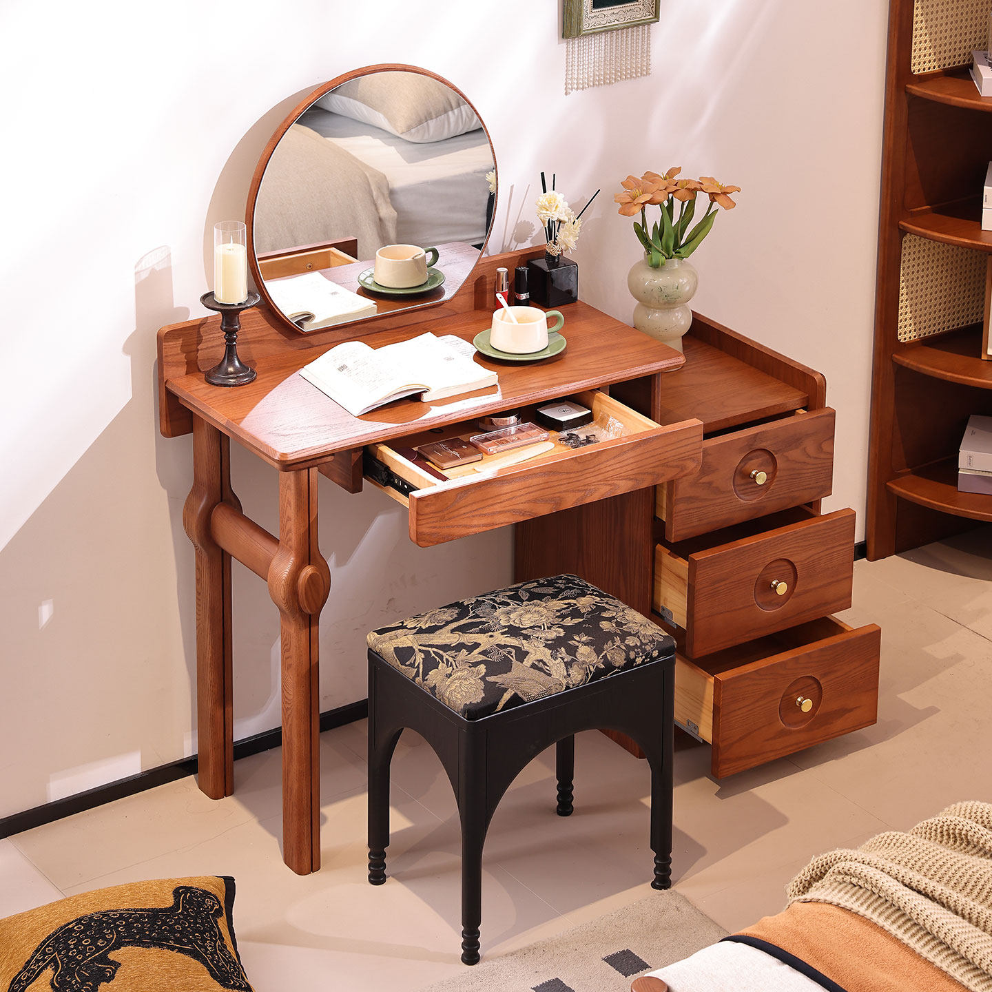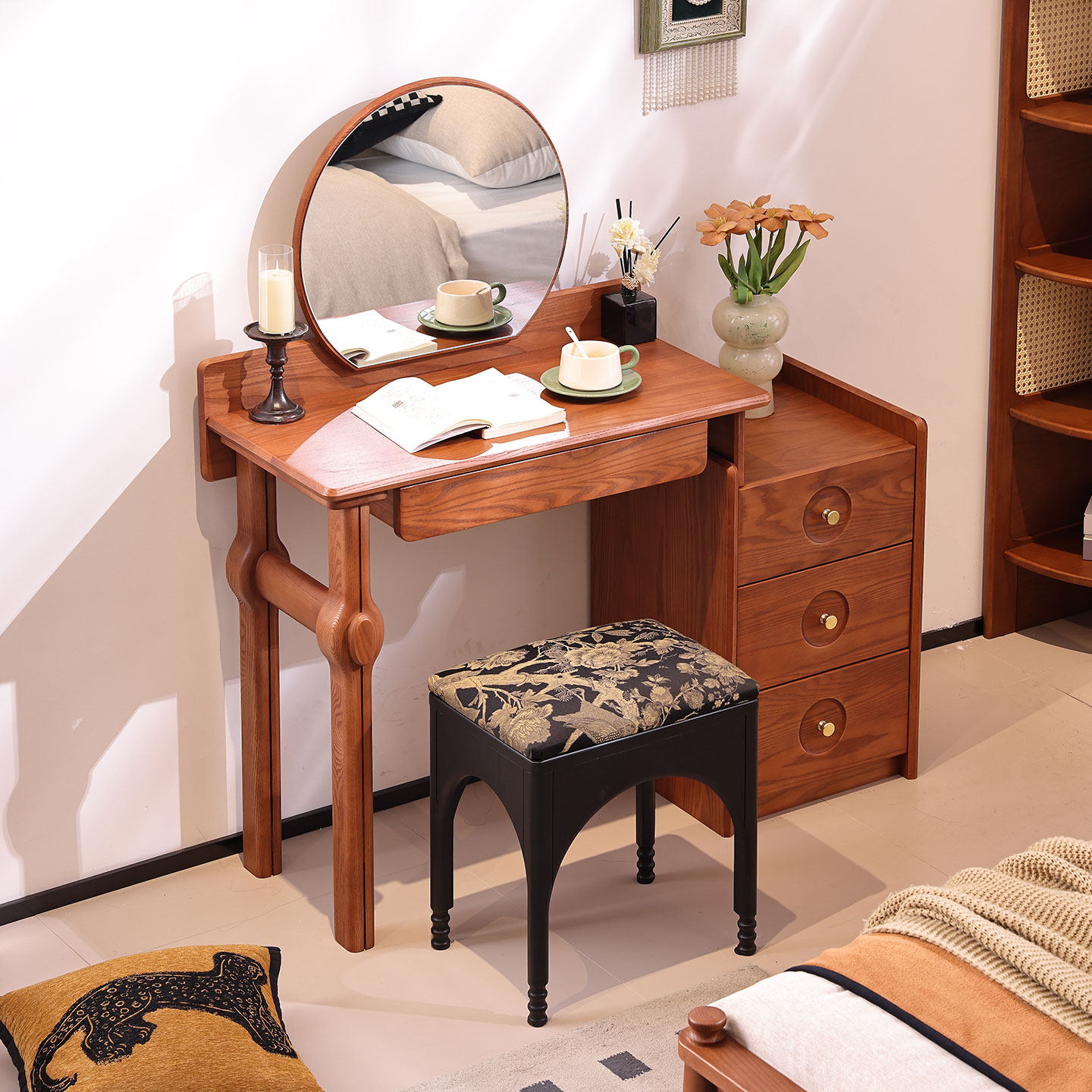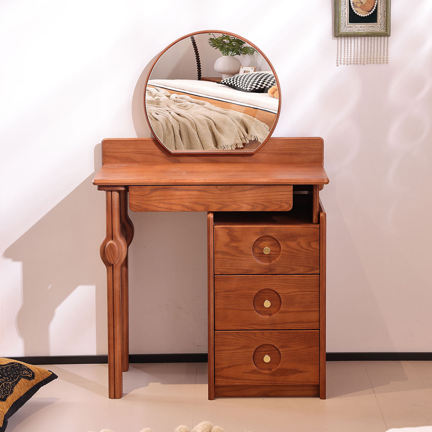 法式复古中古风梳妆台小户型卧室实木梳妆台斗柜一体化妆台桌小型