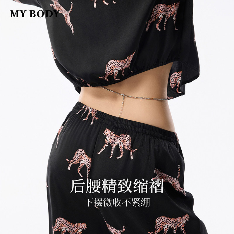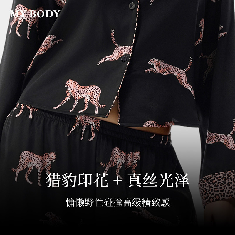 MYBODY商场同款春季睡衣女款套装时尚宽松野性豹纹印花长袖家居服