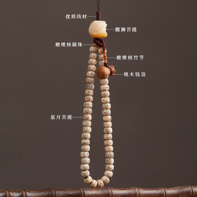 原创设计天然星月菩提手机链挂件套手腕绳盘玩文玩复古风佛系小众挂饰男女手机壳挂绳汽车钥匙扣2025年新款
