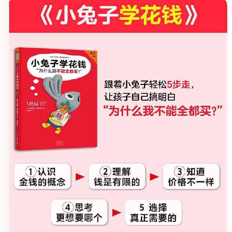 小兔子学花钱 绘本全套4册精装硬壳少儿财商教育系列存钱理财启蒙书 3-5-6-7岁儿童幼儿财商启蒙绘本图画故事书籍亲子共读理财意识
