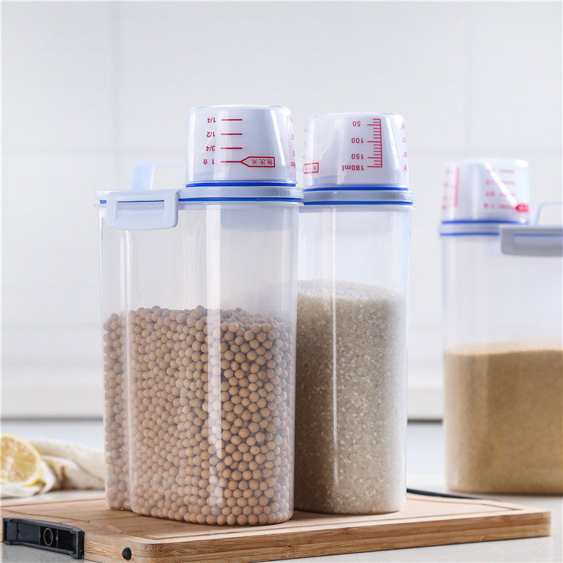2L日式透明杂粮罐 塑料厨房储物罐米桶粗粮罐 五谷杂粮收纳盒