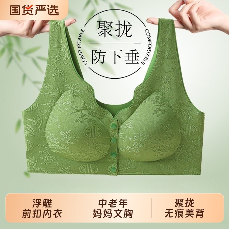 全固定杯可机洗妈妈内衣大码蕾丝前开扣中老年文胸老年人背心