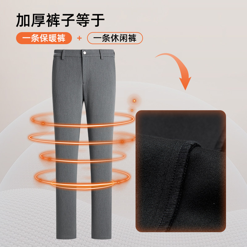 罗蒙加绒加厚男士休闲裤商务休闲秋冬季新款弹力直筒西裤秋冬款