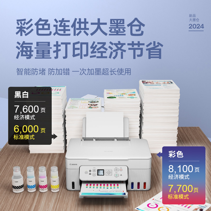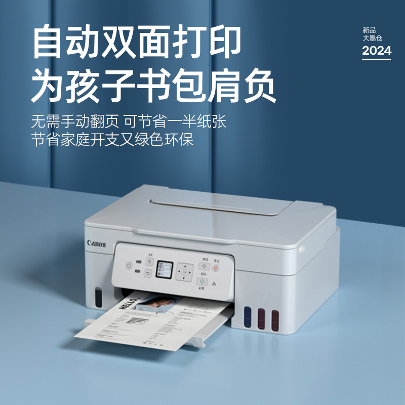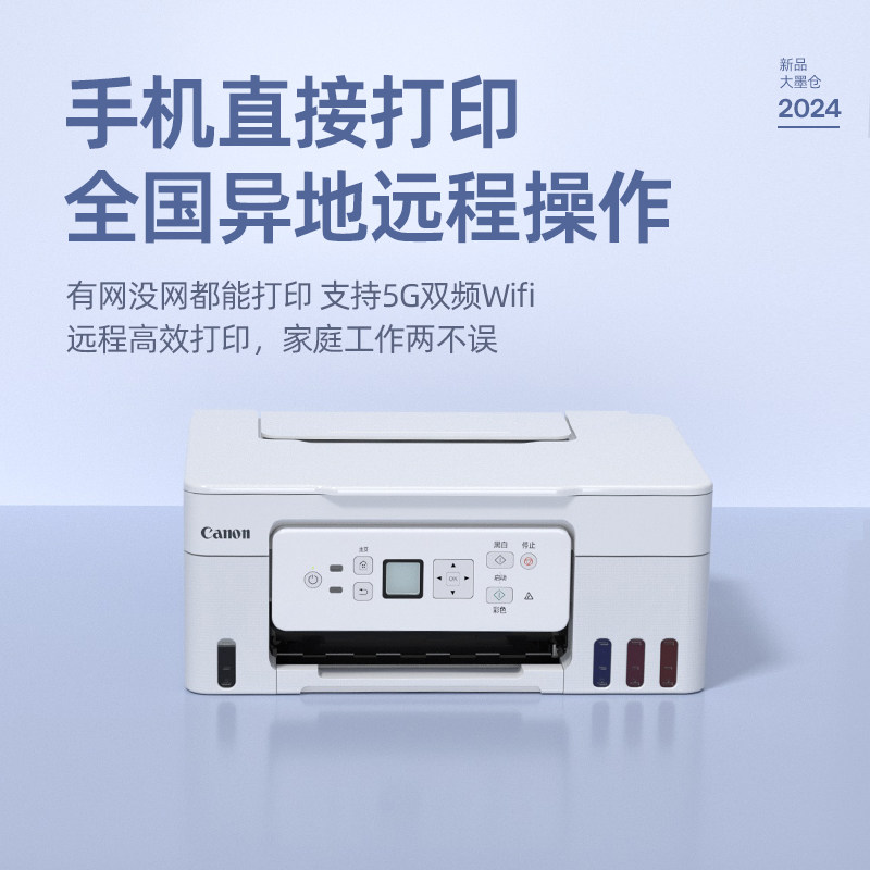 佳能G3881自动双面打印机政府补贴5%彩色墨仓式家用小型复印扫描多功能一体机无线可连手机学生家庭办公专用