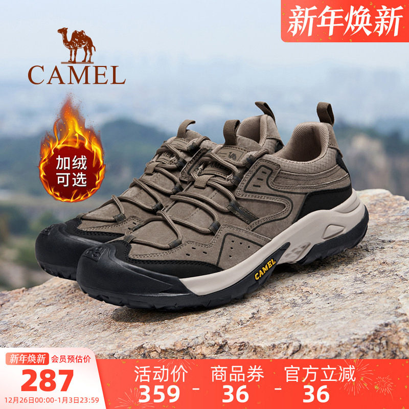 骆驼男鞋2025冬季新款休闲运动鞋男士加绒防滑山系户外登山徒步鞋