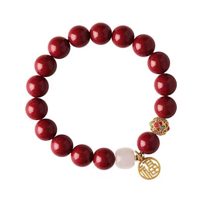 高含量原矿晶体朱砂手链紫金帝王砂福牌和田玉手串本命年礼物女款