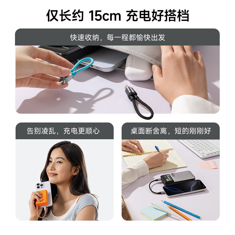CUKTECH酷态科CP编织快充6A数据线C-C短线240W充电线PD3.1适用于小米14 Pro苹果iPhone17Pro安卓Air手机