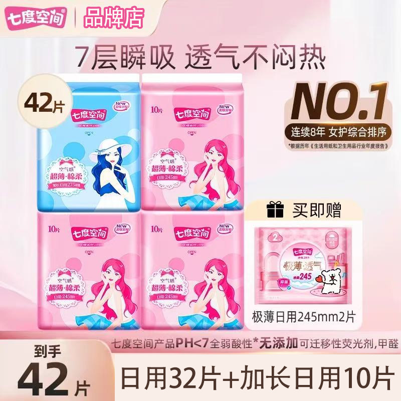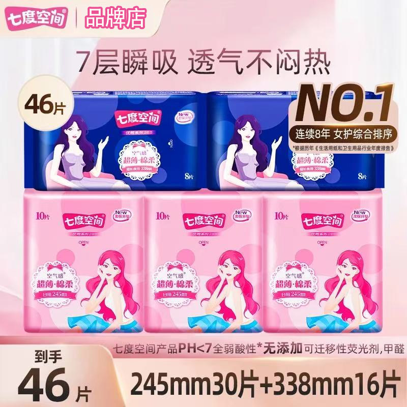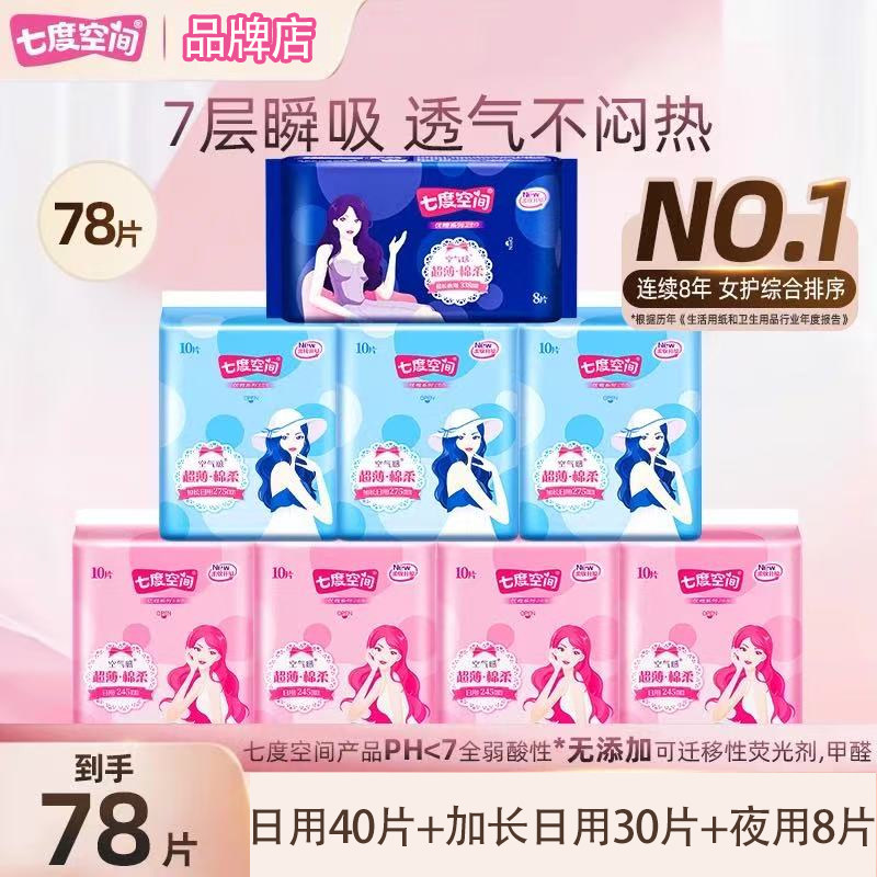 【39.9元任选10包】七度空间日夜用卫生巾正品官方旗舰店