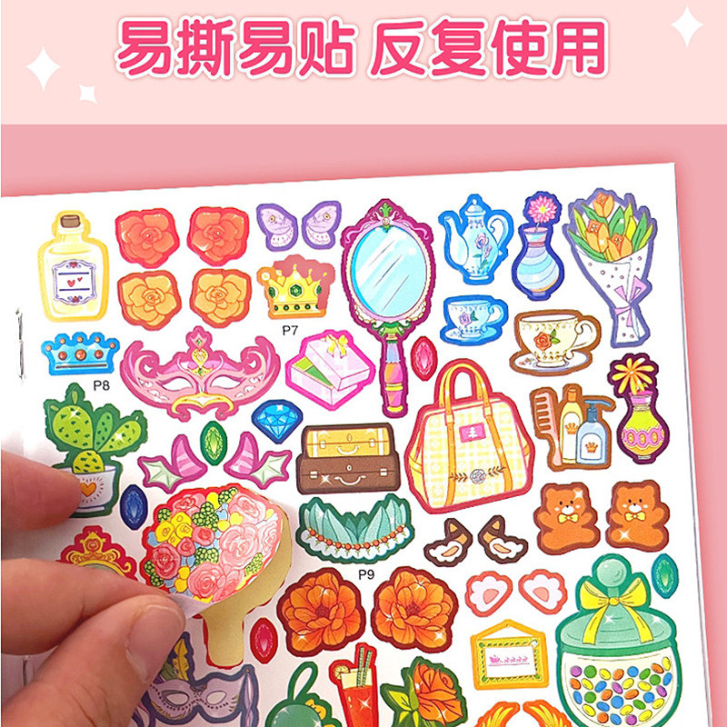 公主换装贴纸书玩具女孩3到6岁卡通礼物儿童益智女童化妆本贴贴画
