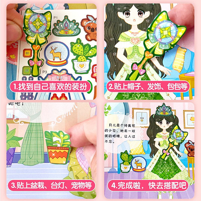 新款公主换装贴纸书女孩卡通粘贴贴画3-6岁儿童动脑益智早教贴画