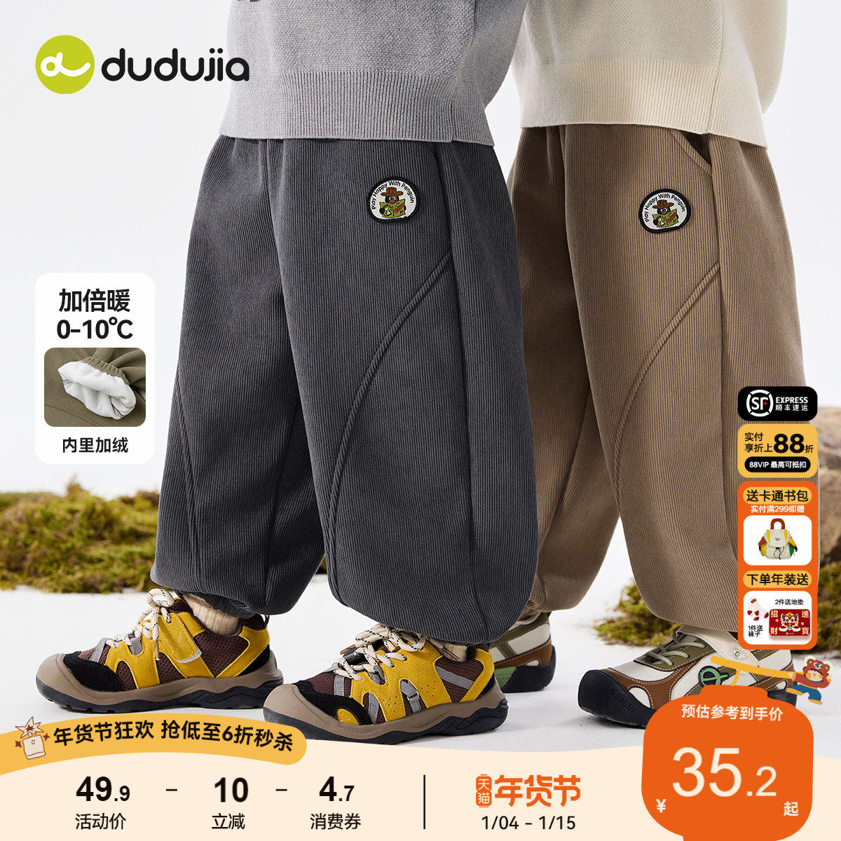嘟嘟家男童裤子冬季加绒儿童长裤秋冬宝宝冬装休闲裤女童童装冬款