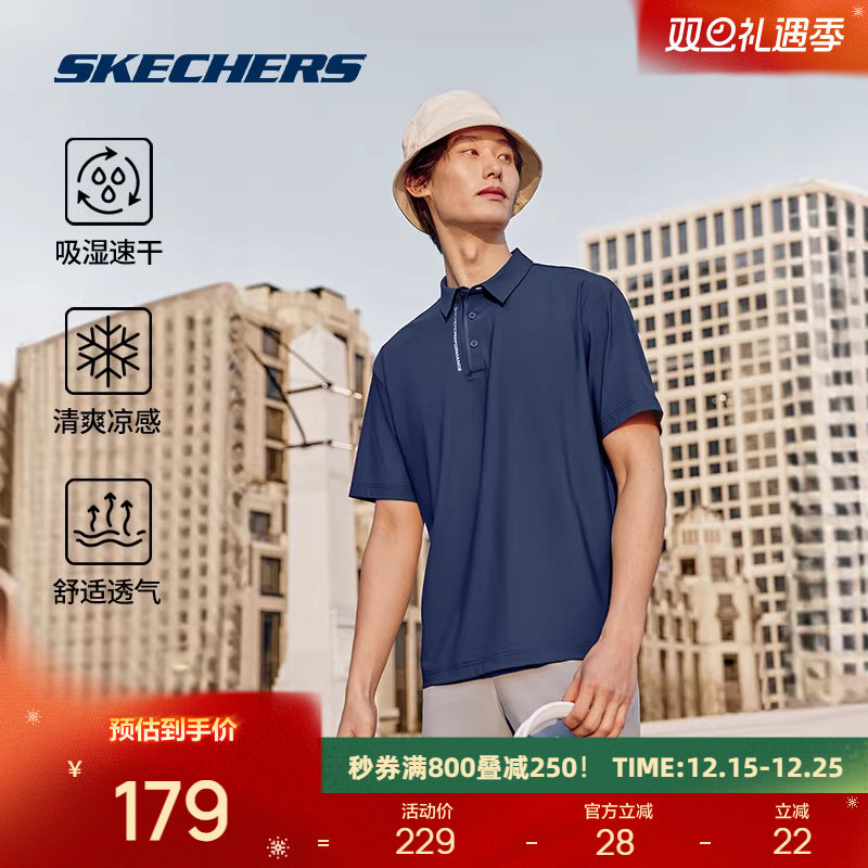 斯凯奇POLO衫男士针织短袖衫速干凉感宽松运动上衣柔软舒适