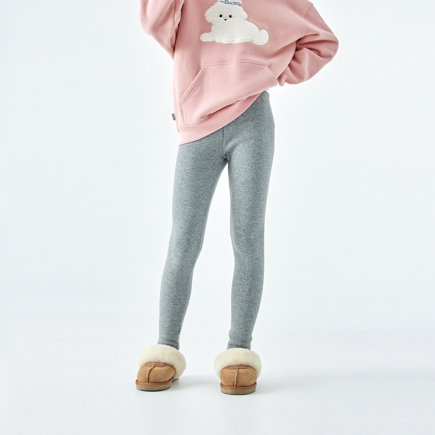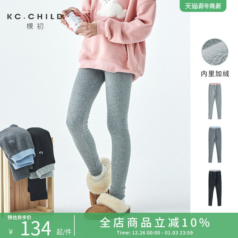 棵初2025年秋冬季新款亲子中大女童弹力加绒打底裤经典基础针织裤