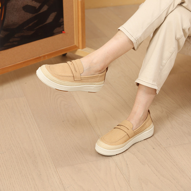Pansy盼喜日本女鞋超轻舒适一脚蹬厚底增高不累脚百搭新款乐福鞋