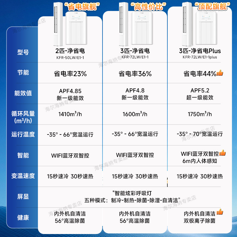 [政府补贴]海尔空调家用客厅大3匹/2匹净省电冷暖立式柜机E1旗舰
